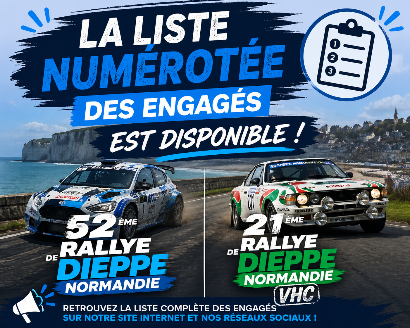 La liste numérotée des engagés du 52ème Rallye de Dieppe Normandie ainsi que du 21ème Rallye de Dieppe Normandie VHC est désormais disponible ! ![]()